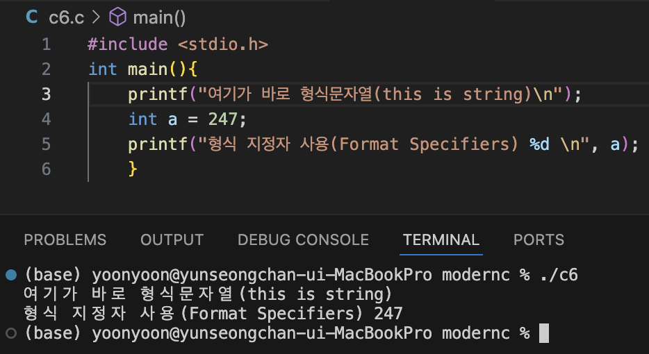 printf("형식 지정자 사용(Format Specifiers) %d \n", a);