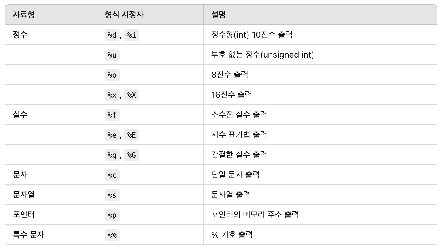 2. 형식 지정자 : 함수 호출 시 값들이 출력될 자리를 미리 지정하는 문자열(%s, %d, %f 등)